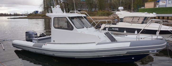 На фотографии катер Кальмар 650 во время проведения ходовых испытаний на акватории Невы в ноябре 2015 года.