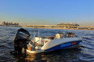Управление катера включает: рулевую машинку Ultraflex повышенной мощности (для моторов до 150 л.с.) с компенсацией обратного усилия от мотора, спортивная педаль газа, управление трим на руле, системный тахометр Smartcraft, с информационным дисплеем, прибор трим, уровень топлива. Музыкальный центр, водостойкий, с USB входом. 2 розетки 12в, 2 розетки USB. Топливный бак 57 л с датчиком. Резервный бак 10 л ("трофи" -канистра). Откачная электрическая помпа. Комплект кранцев, швартовных концов, якорь, спасательная подкова, аптечка, огнетушитель, два телескопических весла в штатных фиксаторах. Тент для хранения на воде из специализированной ткани для мосрких тентов Sunbrella. Грузовой винт алюминий 13" (алюминий), штатный винт 15"(алюминий). Всё винты оригинальные, Меркурий.