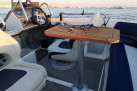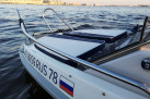 Носовые релинги, поручни в кормовом кокпите и окантовка ветровых стекол из нержавеющей трубы Ф25 мм. В корме установлена мачта для буксировки лыжника. На забортной площадке телескопический трап и транец для электромотора. Для отдыха на стоянке в комплект входит стол шпонированный тиком, на съёмной стойке. Все горизонтальные площадки: палуба, носовой кокпит, кормовые платформы закрыты мягким нескользящим покрытием из материала EVA. В отделке использован тиковый профиль. Осветительное оборудование: ходовые огни, якорный огонь на шарнирной стойке, подсветка кормовой платформы, подсветка палубы в кокпите и в ногах водителя и пассажира, швартовные фары. Вся светотехника светодиодная Attwood и Hellamarine.